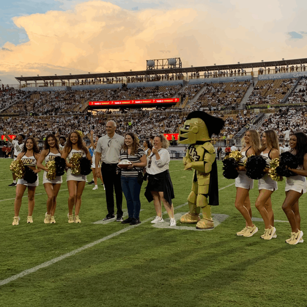 During UCF football’s home opener against Jacksonville State, Rachel Marks, a lecturer in the Department of Writing and Rhetoric, received the Academic Success Partner of the Game award.